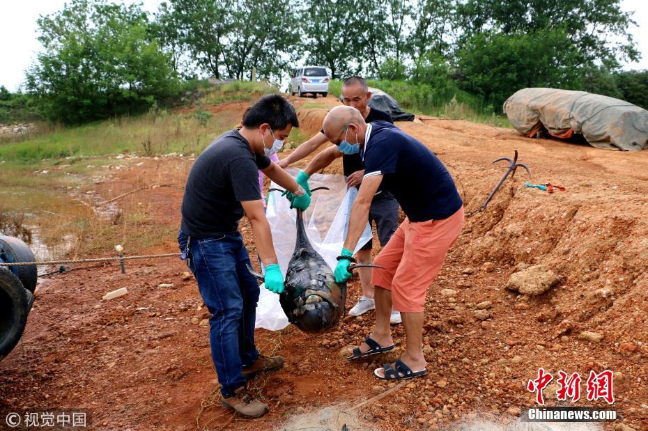 當日16時許,中科院武漢水生所專家趕到現(xiàn)場,經(jīng)解開江豚身上的絲網(wǎng)發(fā)現(xiàn),這頭雄性成年江豚身體無明顯外傷,體重約35公斤,體長1.38米。該水生所段姓研究員判斷,該頭江豚應(yīng)該是被絲網(wǎng)纏住身體后無法掙脫,不能躍出水面呼吸最后導(dǎo)致溺亡,非常可惜。當天下午,水生所專家將這頭死亡江豚帶回解剖并制作標本。洪永林 攝 圖片來源:視覺中國 文字來源:九江新聞網(wǎng)
