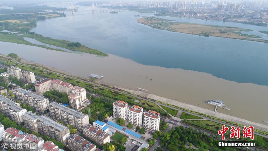 航拍漢江湖北襄陽(yáng)段雨后涇渭分明