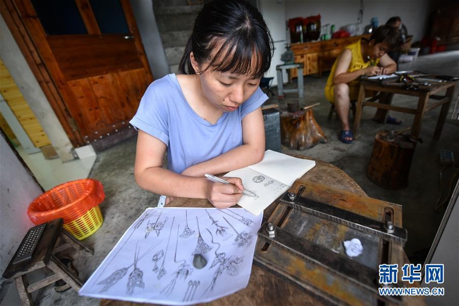 唐白梅是美國(guó)一所高校首飾設(shè)計(jì)專業(yè)的在讀研究生,專門利用暑假時(shí)間到雷山縣學(xué)習(xí)銀飾工藝。 “以前挑著擔(dān)賣貨,賣不完回不了家;現(xiàn)在有了網(wǎng)上銷售,太方便了?!痹谫F州省黔東南苗族侗族自治州雷山縣西江鎮(zhèn)控拜村,50歲的銀匠龍懂陽(yáng)拿著手機(jī)查看全國(guó)各地發(fā)來(lái)的銀飾訂單,七月份的銷售額輕松超過(guò)了一萬(wàn)元。雷山縣的銀匠主要集中在控拜、麻料、烏高三個(gè)村,銀飾加工已經(jīng)有600多年歷史。作為銀匠家族的第九代傳人,龍懂陽(yáng)從14歲開始便挑著銀飾走村串鄉(xiāng),上門推銷。但山鄉(xiāng)偏僻路途遙遠(yuǎn),客源又有限,這種方式僅能勉強(qiáng)維持收支。為了賺錢,龍懂陽(yáng)放棄了傳統(tǒng)手藝,到溫州打工賣皮鞋。隨著家鄉(xiāng)的道路修通,苗寨的游客越來(lái)越多,銀飾品打開了新銷路。2014年,龍懂陽(yáng)建起了銀匠鋪,重拾本行。在當(dāng)?shù)胤鲐毟刹亢涂腿说膯l(fā)下,他建起了銀飾展示廳,開了網(wǎng)店,線上訂單源源不斷。