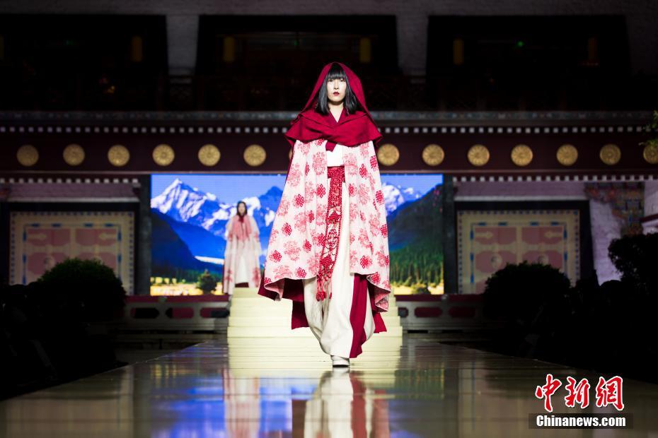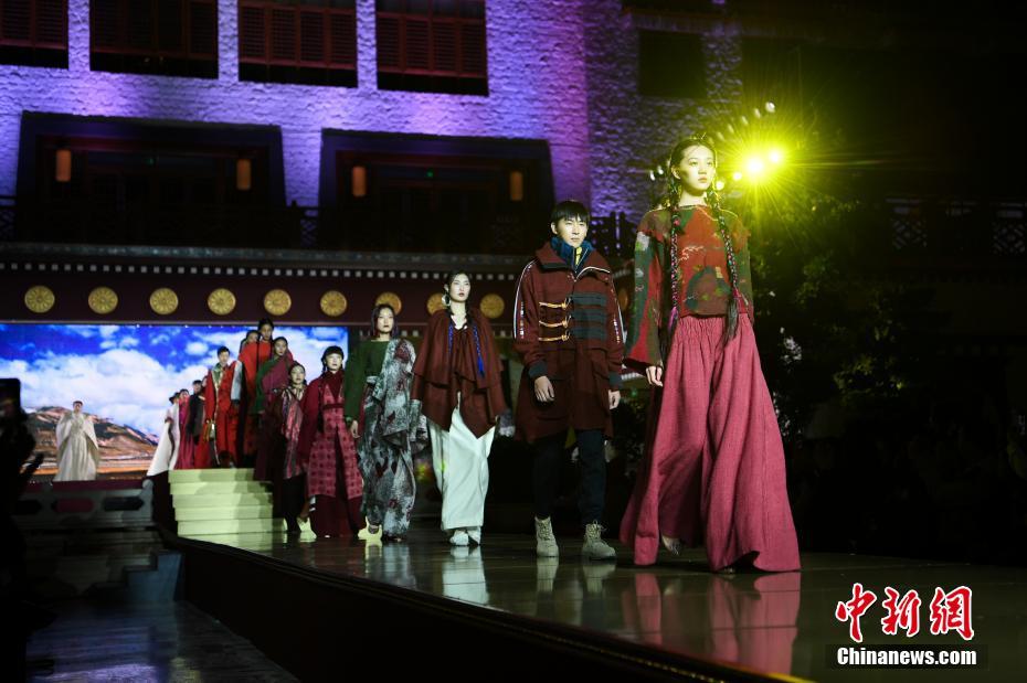 8月12日晚,由西藏職業(yè)技術(shù)學(xué)院與北京服裝學(xué)院共同打造的“凈美雪頓·美好生活”西藏民族服裝與服飾展演活動在拉薩舉行。現(xiàn)場通過傳統(tǒng)篇、現(xiàn)代篇與未來篇三個篇章,展演了藏族傳統(tǒng)服裝26套,設(shè)計創(chuàng)新服裝58套,共計84套服裝。圖為模特展示現(xiàn)代設(shè)計的創(chuàng)新藏族服飾。中新社記者何蓬磊 攝