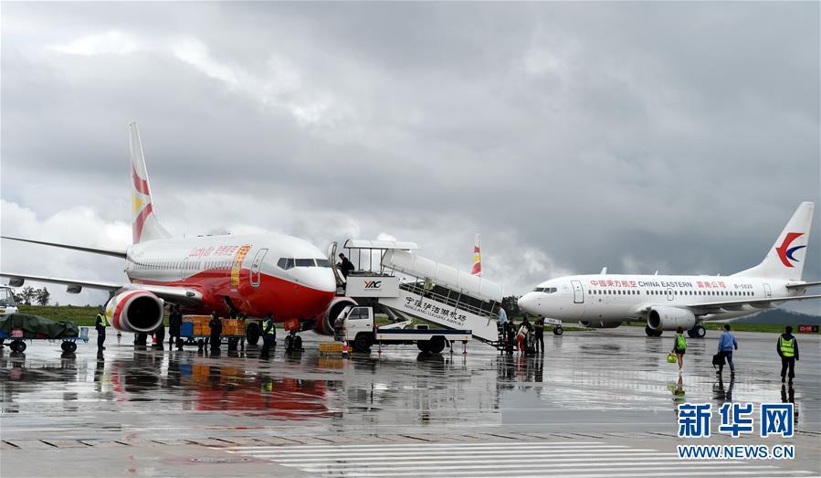 乘客在寧蒗瀘沽湖機(jī)場準(zhǔn)備乘坐飛機(jī)(7月31日攝)。 新華社記者 藺以光 攝