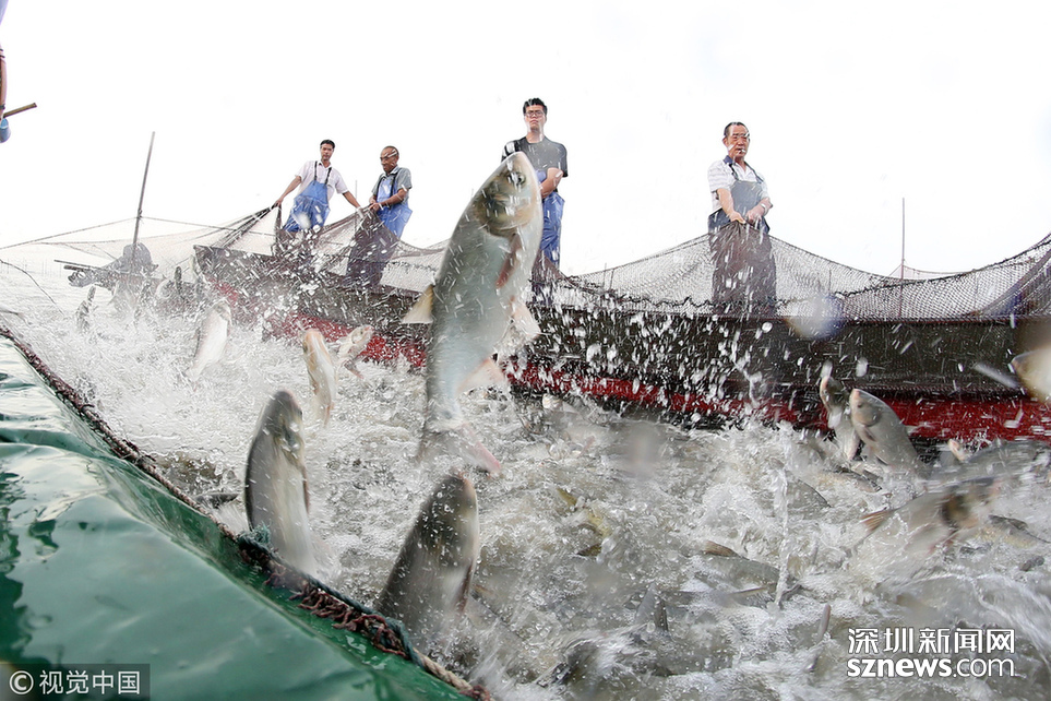 ??? 2018年6月26日,江蘇省常州市嘉澤鎮(zhèn)捕撈村的漁民組織夏季捕撈,一網(wǎng)魚達五萬余斤,以鰱魚為主,供應市場需求。夏捕的魚價較平時有所上漲,漁民粗略估計可增收上萬余元。