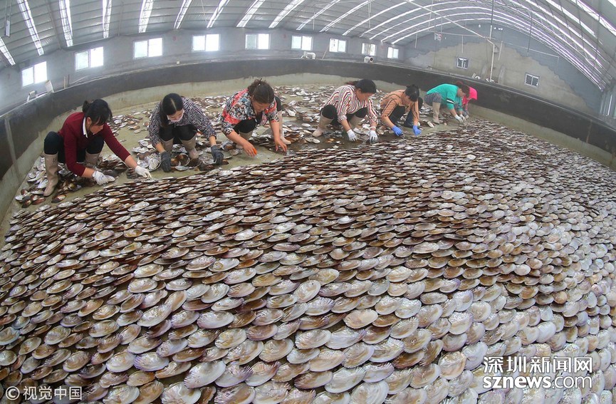???? 2018年6月4日,江蘇省連云港市連島一家紫菜育苗廠工人正在進行條斑紫菜藻體管理。目前,連云港條斑紫菜全面進入育苗培養(yǎng)階段,沿海各地育苗場提升育苗科技水平,培育優(yōu)質(zhì)紫菜苗種。據(jù)悉,連云港紫菜養(yǎng)殖面積達到15萬畝,紫菜育苗面積近20萬平方米,紫菜養(yǎng)殖成為當?shù)貪O業(yè)轉(zhuǎn)型發(fā)展的支柱產(chǎn)業(yè)。