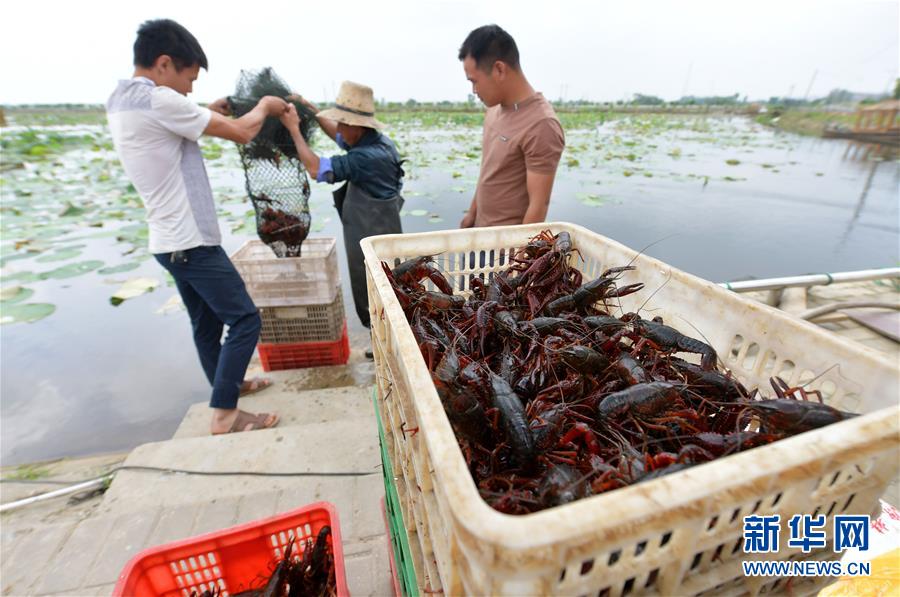 5月23日,在南昌市新建區(qū)象山鎮(zhèn)河林村,當?shù)剞r(nóng)戶將捕獲的小龍蝦搬運上岸裝箱。近日,江西省南昌市新建區(qū)1.7萬畝水域養(yǎng)殖小龍蝦喜獲豐收,當?shù)剞r(nóng)戶紛紛將鮮活的小龍蝦捕獲上岸,裝箱外銷。據(jù)了解,近年來,南昌市新建區(qū)發(fā)揮轄區(qū)內(nèi)河道縱橫,水田眾多的優(yōu)勢,支持鼓勵農(nóng)戶發(fā)展小龍蝦養(yǎng)殖業(yè),為當?shù)剞r(nóng)戶開辟了一條特色養(yǎng)殖的致富之路。新華社記者彭昭之 攝