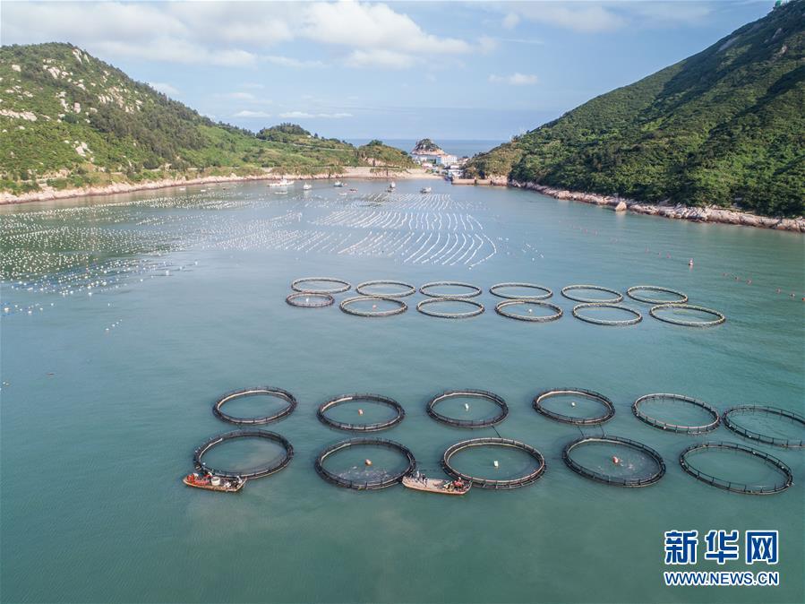 8月19日,空中俯瞰南麂島海域內(nèi)的“海上牧場”養(yǎng)殖區(qū)(無人機(jī)拍攝)。進(jìn)入8月,浙江省溫州市平陽縣南麂鎮(zhèn)海域上大片的大黃魚、貽貝等特色海產(chǎn)品養(yǎng)殖區(qū)域迎來豐收季節(jié),養(yǎng)殖戶們駕駛漁船在養(yǎng)殖區(qū)海域進(jìn)行打撈收獲,在碧海藍(lán)天下構(gòu)成了一幅“海上牧場”的美麗豐收景象。近年來,南麂鎮(zhèn)政府引導(dǎo)漁民養(yǎng)殖戶充分發(fā)揮“靠海吃?!钡馁Y源優(yōu)勢,大力發(fā)展海洋養(yǎng)殖經(jīng)濟(jì)和海島旅游經(jīng)濟(jì),實(shí)現(xiàn)了南麂由“生態(tài)美”向“產(chǎn)業(yè)美”,“產(chǎn)業(yè)美”向“經(jīng)濟(jì)美”的轉(zhuǎn)變。同時(shí)該鎮(zhèn)堅(jiān)持以大黃魚、貽貝等為特色產(chǎn)業(yè)支撐,精準(zhǔn)發(fā)展高效海洋養(yǎng)殖業(yè),重點(diǎn)培養(yǎng)一批新型職業(yè)漁民,依靠專業(yè)技術(shù)支持,實(shí)現(xiàn)深海仿生養(yǎng)殖,讓好生態(tài)造就好品質(zhì),重點(diǎn)打造南麂養(yǎng)殖品牌,組建營銷網(wǎng)絡(luò),拓展特色海產(chǎn)品市場。新華社記者 徐昱攝