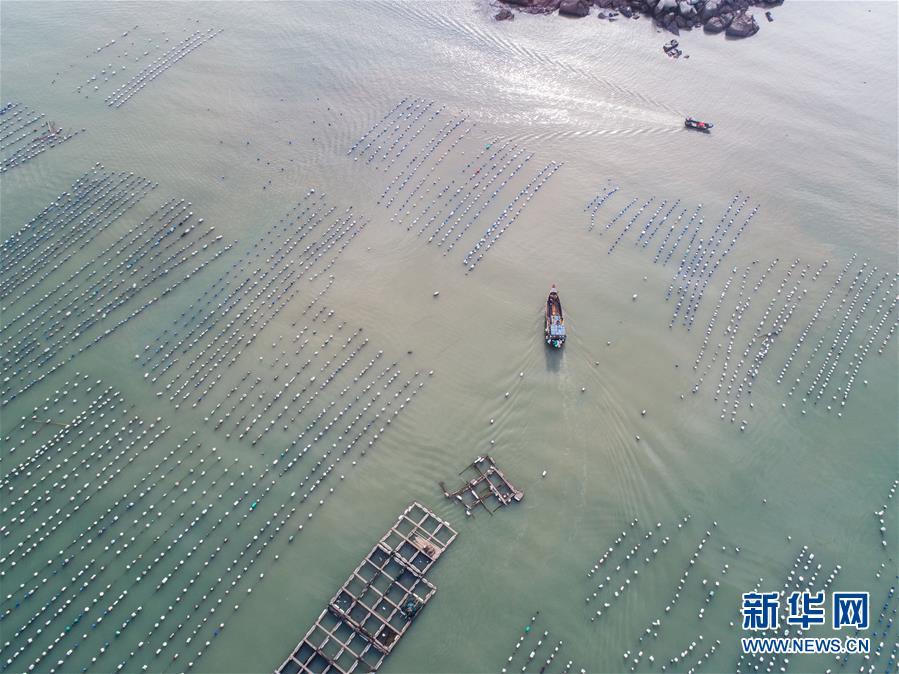 8月18日,南麂島馬祖岙海灣內(nèi),養(yǎng)殖戶乘船在貽貝養(yǎng)殖區(qū)內(nèi)作業(yè)(無人機(jī)拍攝)。進(jìn)入8月,浙江省溫州市平陽縣南麂鎮(zhèn)海域上大片的大黃魚、貽貝等特色海產(chǎn)品養(yǎng)殖區(qū)域迎來豐收季節(jié),養(yǎng)殖戶們駕駛漁船在養(yǎng)殖區(qū)海域進(jìn)行打撈收獲,在碧海藍(lán)天下構(gòu)成了一幅“海上牧場”的美麗豐收景象。近年來,南麂鎮(zhèn)政府引導(dǎo)漁民養(yǎng)殖戶充分發(fā)揮“靠海吃海”的資源優(yōu)勢,大力發(fā)展海洋養(yǎng)殖經(jīng)濟(jì)和海島旅游經(jīng)濟(jì),實(shí)現(xiàn)了南麂由“生態(tài)美”向“產(chǎn)業(yè)美”,“產(chǎn)業(yè)美”向“經(jīng)濟(jì)美”的轉(zhuǎn)變。同時(shí)該鎮(zhèn)堅(jiān)持以大黃魚、貽貝等為特色產(chǎn)業(yè)支撐,精準(zhǔn)發(fā)展高效海洋養(yǎng)殖業(yè),重點(diǎn)培養(yǎng)一批新型職業(yè)漁民,依靠專業(yè)技術(shù)支持,實(shí)現(xiàn)深海仿生養(yǎng)殖,讓好生態(tài)造就好品質(zhì),重點(diǎn)打造南麂養(yǎng)殖品牌,組建營銷網(wǎng)絡(luò),拓展特色海產(chǎn)品市場。新華社記者 徐昱攝