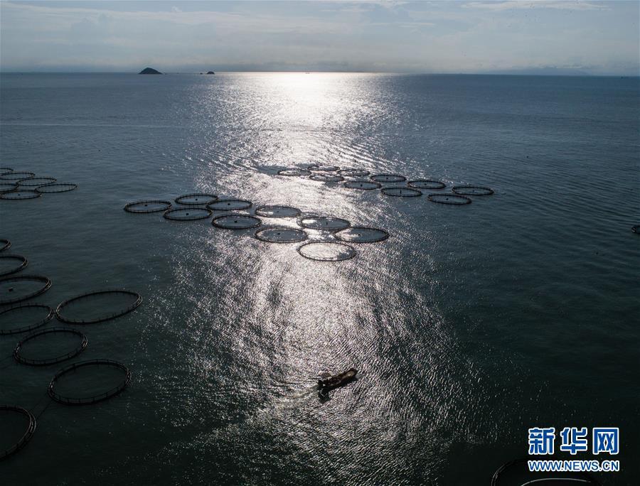 8月18日,漁船行駛在南麂島馬祖岙海域內(nèi)的“海上牧場”大黃魚養(yǎng)殖區(qū)(無人機(jī)拍攝)。進(jìn)入8月,浙江省溫州市平陽縣南麂鎮(zhèn)海域上大片的大黃魚、貽貝等特色海產(chǎn)品養(yǎng)殖區(qū)域迎來豐收季節(jié),養(yǎng)殖戶們駕駛漁船在養(yǎng)殖區(qū)海域進(jìn)行打撈收獲,在碧海藍(lán)天下構(gòu)成了一幅“海上牧場”的美麗豐收景象。近年來,南麂鎮(zhèn)政府引導(dǎo)漁民養(yǎng)殖戶充分發(fā)揮“靠海吃海”的資源優(yōu)勢,大力發(fā)展海洋養(yǎng)殖經(jīng)濟(jì)和海島旅游經(jīng)濟(jì),實(shí)現(xiàn)了南麂由“生態(tài)美”向“產(chǎn)業(yè)美”,“產(chǎn)業(yè)美”向“經(jīng)濟(jì)美”的轉(zhuǎn)變。同時(shí)該鎮(zhèn)堅(jiān)持以大黃魚、貽貝等為特色產(chǎn)業(yè)支撐,精準(zhǔn)發(fā)展高效海洋養(yǎng)殖業(yè),重點(diǎn)培養(yǎng)一批新型職業(yè)漁民,依靠專業(yè)技術(shù)支持,實(shí)現(xiàn)深海仿生養(yǎng)殖,讓好生態(tài)造就好品質(zhì),重點(diǎn)打造南麂養(yǎng)殖品牌,組建營銷網(wǎng)絡(luò),拓展特色海產(chǎn)品市場。新華社記者 徐昱攝