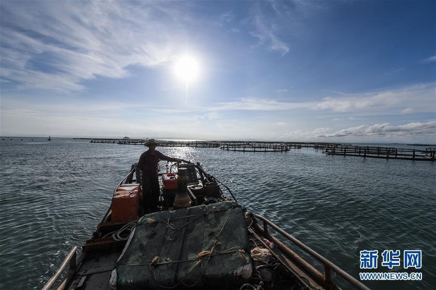 8月18日,南麂島海域的“海上牧場”養(yǎng)殖區(qū)內(nèi),漁民駕駛漁船進(jìn)行養(yǎng)殖作業(yè)。進(jìn)入8月,浙江省溫州市平陽縣南麂鎮(zhèn)海域上大片的大黃魚、貽貝等特色海產(chǎn)品養(yǎng)殖區(qū)域迎來豐收季節(jié),養(yǎng)殖戶們駕駛漁船在養(yǎng)殖區(qū)海域進(jìn)行打撈收獲,在碧海藍(lán)天下構(gòu)成了一幅“海上牧場”的美麗豐收景象。近年來,南麂鎮(zhèn)政府引導(dǎo)漁民養(yǎng)殖戶充分發(fā)揮“靠海吃?!钡馁Y源優(yōu)勢,大力發(fā)展海洋養(yǎng)殖經(jīng)濟(jì)和海島旅游經(jīng)濟(jì),實(shí)現(xiàn)了南麂由“生態(tài)美”向“產(chǎn)業(yè)美”,“產(chǎn)業(yè)美”向“經(jīng)濟(jì)美”的轉(zhuǎn)變。同時(shí)該鎮(zhèn)堅(jiān)持以大黃魚、貽貝等為特色產(chǎn)業(yè)支撐,精準(zhǔn)發(fā)展高效海洋養(yǎng)殖業(yè),重點(diǎn)培養(yǎng)一批新型職業(yè)漁民,依靠專業(yè)技術(shù)支持,實(shí)現(xiàn)深海仿生養(yǎng)殖,讓好生態(tài)造就好品質(zhì),重點(diǎn)打造南麂養(yǎng)殖品牌,組建營銷網(wǎng)絡(luò),拓展特色海產(chǎn)品市場。新華社記者 徐昱攝
