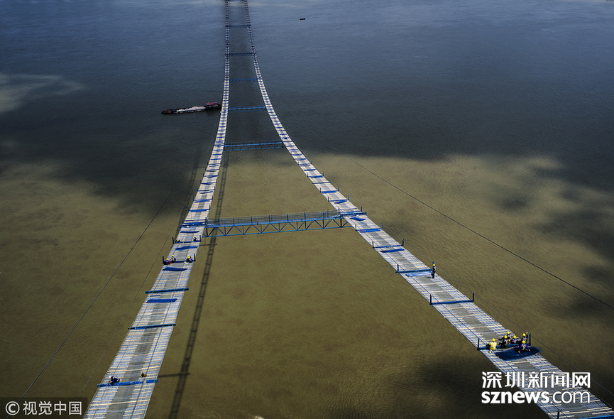 ???? 貓道是懸索橋施工時架設在主纜之下、平行于主纜的線形臨時施工便道,是主纜系統(tǒng)乃至懸索橋整個上部結構的施工高空腳手架平臺,作為極其重要的臨時施工設施,大橋竣工后被拆除。