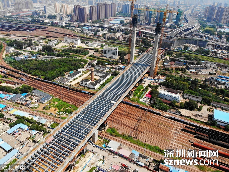 在橋梁頂推的同時,設計高度為150米的主塔也在不斷“長高”,目前高度為130米?!爸魉跇蛄耗媳眱蓚?cè)各有一個,均為每次(8~10天)升高6米?!遍Z斌說,主塔預計在9月中旬澆筑到位,10月份將安裝斜拉索。