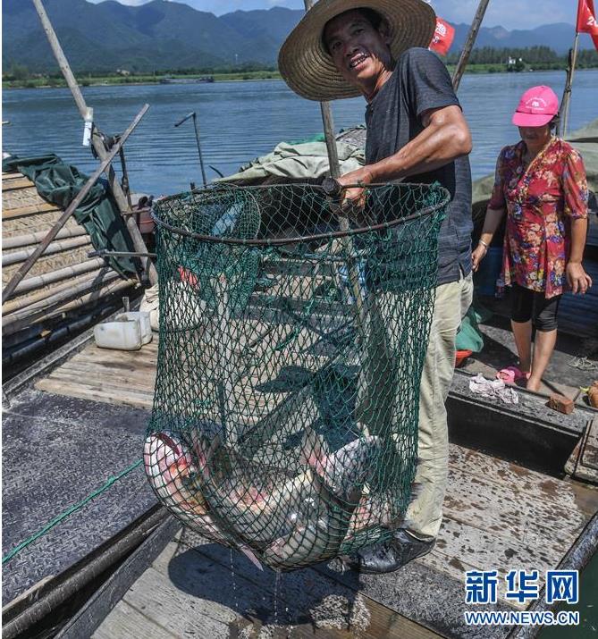 9月18日,漁民在富春江上捕撈江鮮。