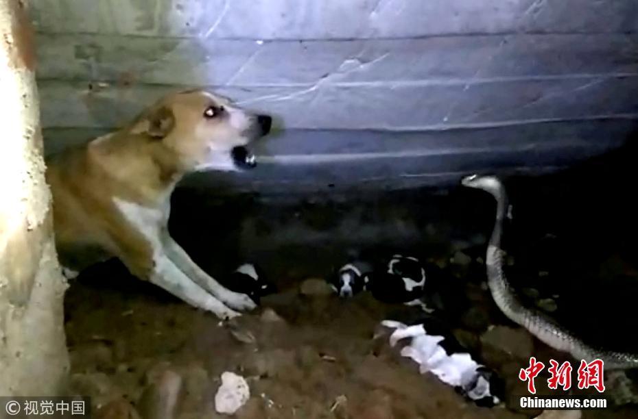 9月20日訊(具體拍攝時間不詳),印度奧里薩邦,一只寵物狗勇敢地挽救了新生幼犬的生命,它擊退了一條可怕的眼鏡蛇。面對一條巨大的斑點眼鏡蛇——世界上最毒的蛇之一——這位新媽媽勇敢保護(hù)僅出生兩天的幼崽。但不幸的是,盡管狗狗盡了最大的努力,蛇還是在救援人員救出幼犬之前仍殺死了4只小狗。圖片來源:視覺中國