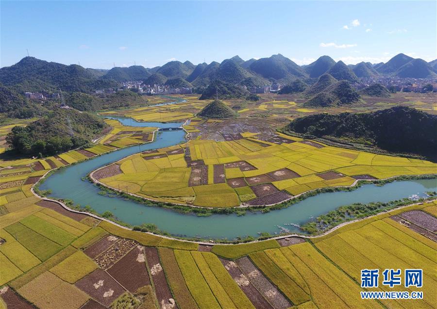 這是廣南縣八寶鎮(zhèn)壩龍村的稻田景色(9月20日無(wú)人機(jī)拍攝)。 云南省文山壯族苗族自治州廣南縣八寶鎮(zhèn)今年種植優(yōu)質(zhì)水稻22000余畝,秋收季節(jié),田野里一片金黃,景色如畫(huà)。 新華社記者楊宗友攝