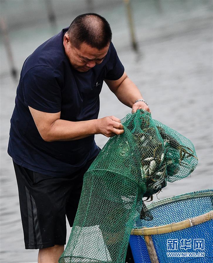 9月21日,蟹農(nóng)在陽澄湖捕撈大閘蟹。新華社記者李響攝