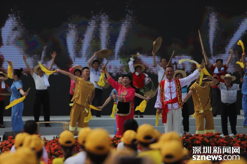 慶祝首屆“中國農(nóng)民豐收節(jié)”活動在梅州大黃村舉行,廣東省政府副省長葉貞琴為十佳最美新型職業(yè)農(nóng)民頒獎。