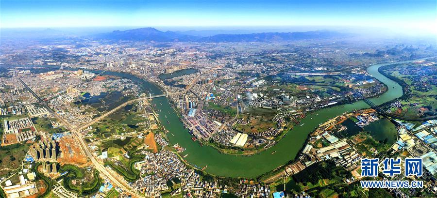 這是西江黃金水道上的重鎮(zhèn)貴港市全景(3月9日攝,無人機(jī)航拍)。