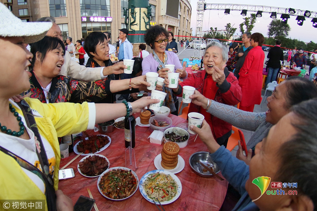 2018年9月23日,一場別開生面的迎中秋“百家宴”在山東省乳山市金鼎銀龍灣廣場舉行,來自周邊三個小區(qū)的800多名居民,攜自家的拿手好菜歡聚一堂,共敘鄰里情,喜迎中秋節(jié)。