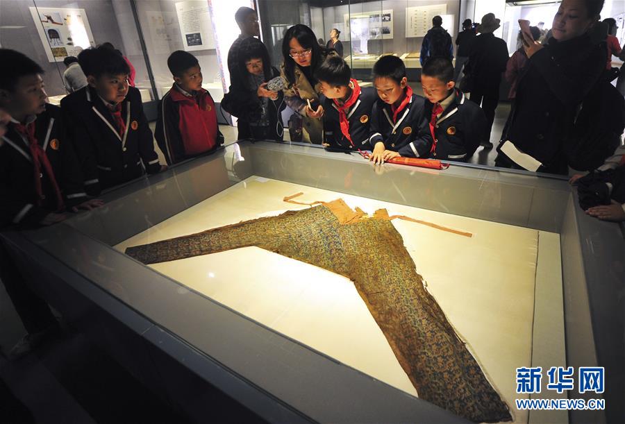 9月24日,在位于烏魯木齊的新疆博物館,參觀者在“尼雅·考古·故事——中日尼雅考古30周年成果展”上觀看“長樂大明光”錦女褲。此次展覽從9月22日持續(xù)到2019年1月。 新華社記者 王菲 攝