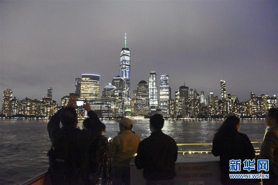 9月23日,在美國紐約,人們在游船賞月活動中拍攝曼哈頓美景。 23日晚,紐約華人社團(tuán)聯(lián)合總會等20多個僑團(tuán)聯(lián)合主辦哈得孫河游船賞月活動。游船從哈得孫河到東河,途經(jīng)炮臺公園、自由女神像、華爾街金融區(qū)、聯(lián)合國大樓等著名景點(diǎn)。 新華社記者韓芳攝