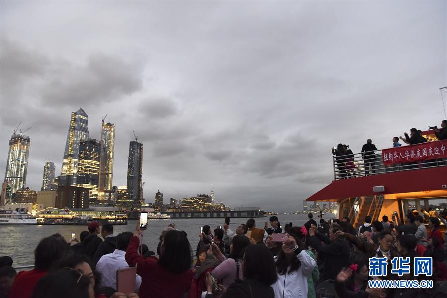 9月23日,在美國紐約,人們參加游船賞月活動(dòng)。 23日晚,紐約華人社團(tuán)聯(lián)合總會(huì)等20多個(gè)僑團(tuán)聯(lián)合主辦哈得孫河游船賞月活動(dòng)。游船從哈得孫河到東河,途經(jīng)炮臺(tái)公園、自由女神像、華爾街金融區(qū)、聯(lián)合國大樓等著名景點(diǎn)。 新華社記者韓芳攝