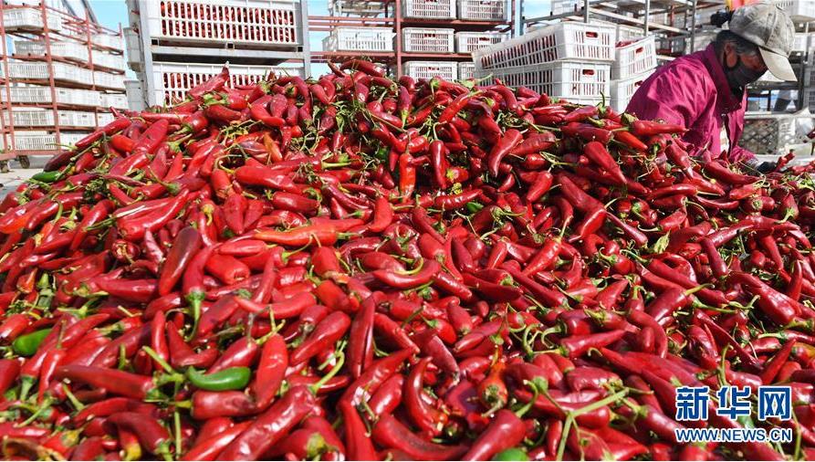 9月16日,阜城縣王集鄉(xiāng)南張莊村農(nóng)民在搬運采摘的辣椒。近年來,河北省阜城縣王集鄉(xiāng)在推進產(chǎn)業(yè)富民過程中,積極引導(dǎo)農(nóng)民調(diào)整農(nóng)業(yè)產(chǎn)業(yè)結(jié)構(gòu),按照品種特色化、種植規(guī)?;a(chǎn)銷一體化的“公司+基地+農(nóng)戶”的經(jīng)營模式,鼓勵農(nóng)民發(fā)展特色辣椒種植,推行“訂單種植”模式,開辟出了一條農(nóng)民創(chuàng)收新路徑。目前,阜城縣王集鄉(xiāng)辣椒種植面積3100余畝,每畝年收益2500元以上,帶動當(dāng)?shù)剞r(nóng)民實現(xiàn)增收。新華社記者朱旭東攝