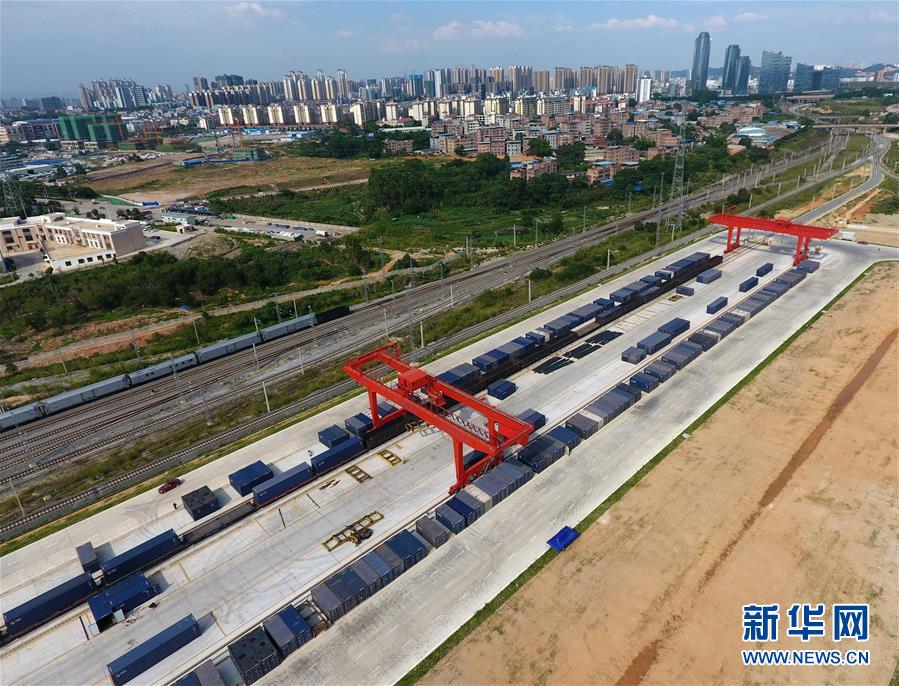 這是正在作業(yè)的南寧鐵路物流中心(5月23日無人機拍攝)。 廣西壯族自治區(qū)成立60年來,鐵路建設(shè)發(fā)生翻天覆地的變化。來自中國鐵路南寧局集團(tuán)有限公司的數(shù)據(jù)顯示,1958年廣西鐵路總里程為1346.3公里,如今廣西鐵路總里程達(dá)5191公里。廣西與周邊相鄰省份間實現(xiàn)動車“公交化”開行。此外,北部灣港—重慶班列、東盟海產(chǎn)品冷鏈班列、“百色一號”果蔬專列等的開通和運營,強化了鐵路供給的針對性和有效性。鐵路成為助推廣西經(jīng)濟(jì)社會快速發(fā)展的“大動脈”。 新華社記者陸波岸攝