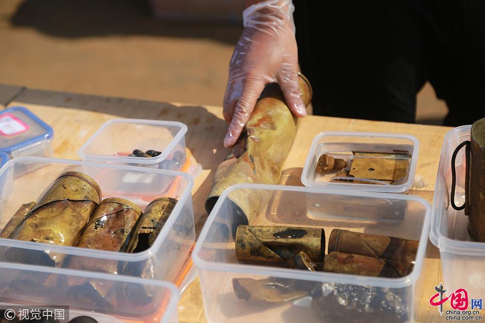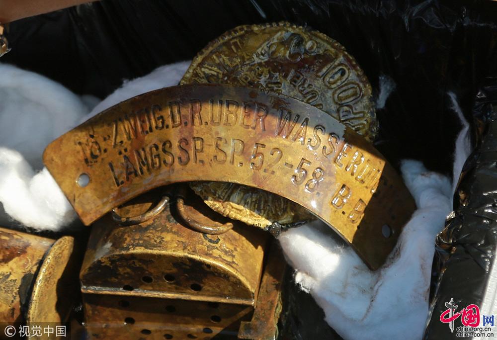 2018年9月25日,遼寧大連,在莊河黑島海域甲午戰(zhàn)爭“經(jīng)遠(yuǎn)艦”遺址出水的各類遺物標(biāo)本。視覺中國