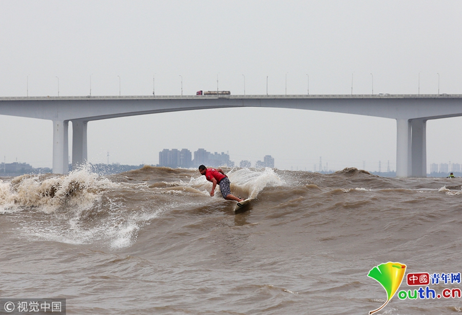 杭州:高手聚集錢塘江 上演沖浪對(duì)決