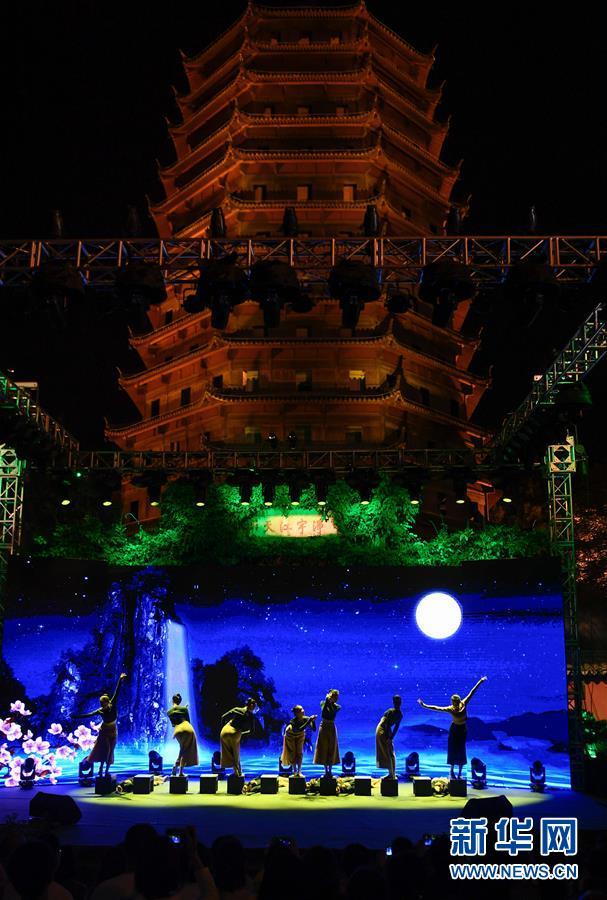 9月26日,浙江音樂學(xué)院舞蹈團(tuán)成員在錢塘江畔六和塔下表演舞蹈。新華社記者 黃宗治 攝