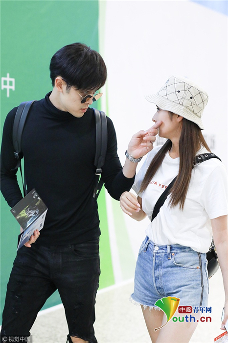 2018年9月26日,上海,穎兒、付辛博夫婦亮相機場。穎兒身穿白T恤和牛仔短褲露出纖細美腿十分養(yǎng)眼,一路挽著老公的手十分恩愛甜蜜,日前,穎兒還在節(jié)目上痛哭述說自己與付辛博新婚相處的苦楚。