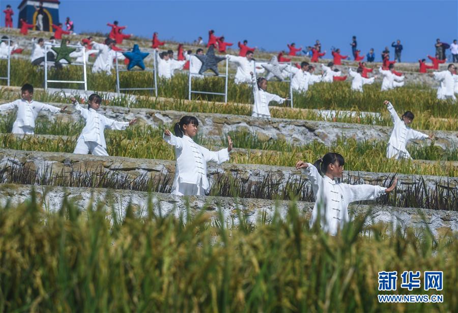 9月29日,太極拳愛好者在建德市大洋鎮(zhèn)高垣村的千畝梯田上進行表演。當(dāng)日,2000多名太極拳愛好者在浙江省建德市大洋鎮(zhèn)高垣村的千畝梯田上參加太極拳表演,吸引很多當(dāng)?shù)厝撕陀慰颓皝碛^賞,助力當(dāng)?shù)亟鹎飼r節(jié)鄉(xiāng)村旅游。近兩年來,大洋鎮(zhèn)充分利用土地整治后形成的千畝梯田打造農(nóng)業(yè)觀光綜合體,發(fā)展綜合型農(nóng)業(yè)觀光旅游,為鄉(xiāng)村振興注入新活力。新華社記者徐昱攝