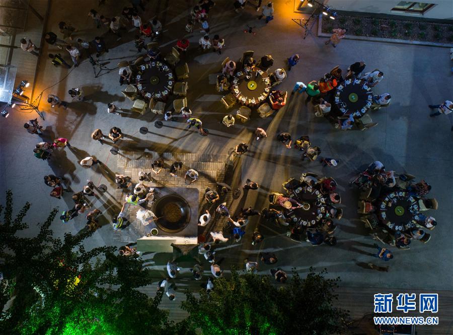 9月30日,中外游客入席品嘗“江鮮第一鍋”(無人機拍攝)。當日,浙江省杭州市富陽區(qū)場口鎮(zhèn)東梓關(guān)村開啟“江鮮第一鍋”,幾位大廚聯(lián)手在直徑1.5米的大鍋內(nèi)烹制美味江鮮,這也是當?shù)亍敖r大會”的重頭戲。東梓關(guān)村有著1000多年歷史,古就是富春江南岸重要的商貿(mào)集散地,素有富春江“東流第一關(guān)”之稱。隨著近年來美麗鄉(xiāng)村建設(shè)的推進,東梓關(guān)村著力打造粉墻黛瓦的江南民居,同時依托富春江豐富的江鮮魚類資源,在秋季舉辦特色“江鮮大會”,通過江鮮捕撈體驗、江鮮第一鍋、百鮮宴、農(nóng)家菜大賽等活動,吸引各地游客前來感受富春江漁民豐收的喜悅和千年古村的獨特魅力,推動鄉(xiāng)村特色旅游發(fā)展。新華社記者徐昱攝