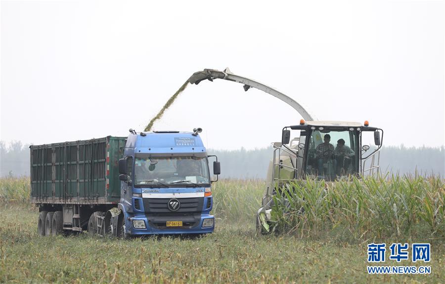 10月8日,河北故城縣里老鄉(xiāng)林場村農(nóng)民在收獲青貯玉米。 近年來,河北省故城縣結(jié)合市場需求,通過“龍頭企業(yè)+基地+農(nóng)戶”的經(jīng)營模式,鼓勵引導農(nóng)民發(fā)展訂單式青貯玉米種植,不僅增加了種植戶收入,而且為養(yǎng)殖企業(yè)提供了優(yōu)質(zhì)飼料。目前,故城縣已發(fā)展青貯玉米種植面積6萬余畝。 新華社記者 朱旭東 攝