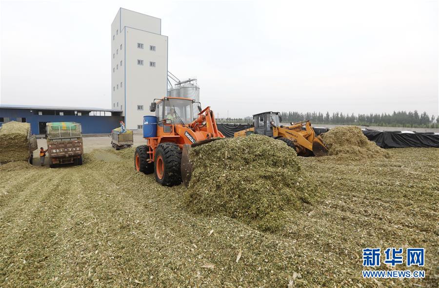10月8日,工人在進行青貯飼料整理。 近年來,河北省故城縣結(jié)合市場需求,通過“龍頭企業(yè)+基地+農(nóng)戶”的經(jīng)營模式,鼓勵引導農(nóng)民發(fā)展訂單式青貯玉米種植,不僅增加了種植戶收入,而且為養(yǎng)殖企業(yè)提供了優(yōu)質(zhì)飼料。目前,故城縣已發(fā)展青貯玉米種植面積6萬余畝。 新華社記者 朱旭東 攝