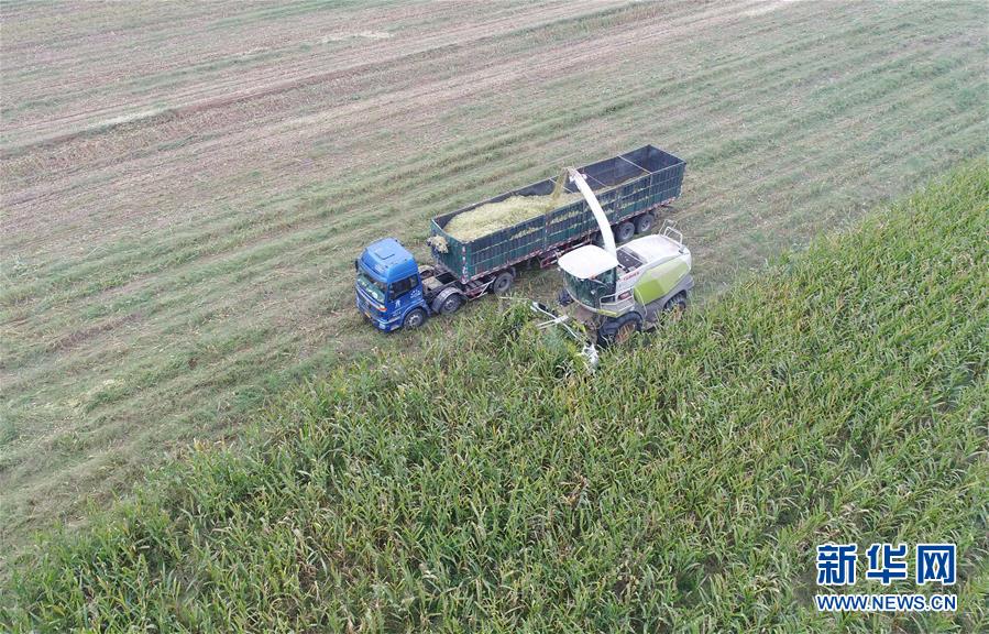 10月8日,河北故城縣里老鄉(xiāng)林場村農(nóng)民在收獲青貯玉米(無人機拍攝)。 近年來,河北省故城縣結(jié)合市場需求,通過“龍頭企業(yè)+基地+農(nóng)戶”的經(jīng)營模式,鼓勵引導(dǎo)農(nóng)民發(fā)展訂單式青貯玉米種植,不僅增加了種植戶收入,而且為養(yǎng)殖企業(yè)提供了優(yōu)質(zhì)飼料。目前,故城縣已發(fā)展青貯玉米種植面積6萬余畝。 新華社記者 朱旭東 攝