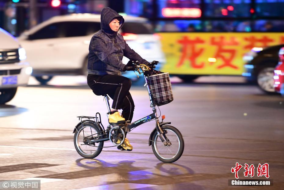 10月9日,受冷空氣影響,沈陽氣溫突降,最低氣溫僅僅2℃,逼近冰點(diǎn),市民棉衣出行。低溫給出行的市民帶來諸多不便。沈陽 攝 圖片來源:視覺中國