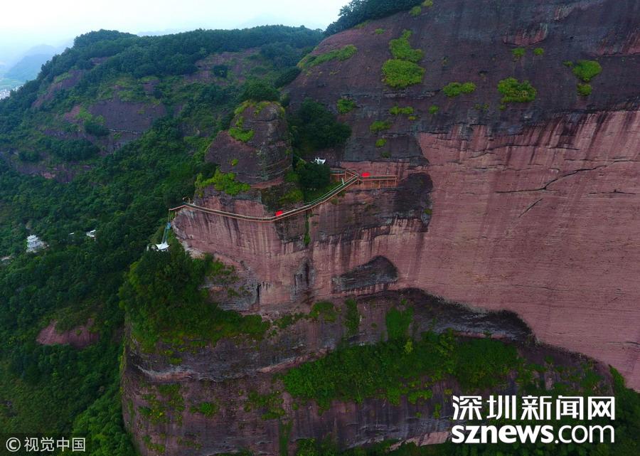 深圳新聞網(wǎng)訊 武義縣大紅巖景區(qū)在227500平方懸崖上建造的玻璃桟道,通過有關(guān)部驗收,10月1日將開放接待游客。武義縣大紅巖是國家級風景名勝區(qū),今年景區(qū)利用長650米、高350米的懸崖峭壁建造玻璃桟道,為景區(qū)又增添了一道壯觀的景點。