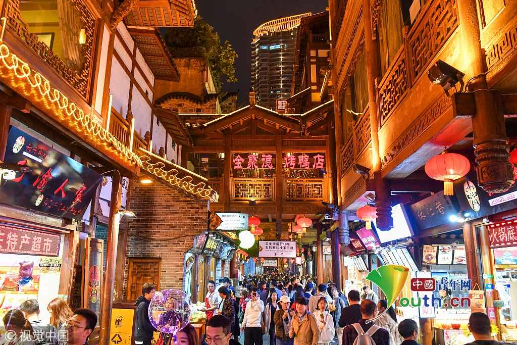 洪崖洞街上游人如織。