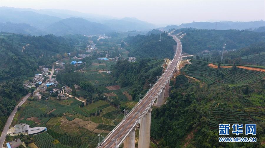 這是10月11日無(wú)人機(jī)拍攝的川藏鐵路成雅段一座鐵路橋。新華社記者薛玉斌攝