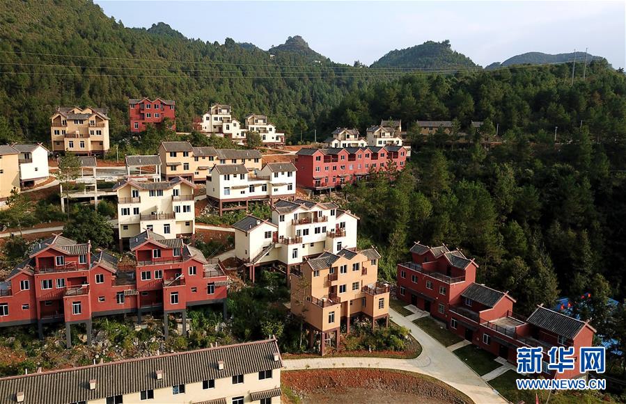 10月11日無(wú)人機(jī)拍攝的廣西南丹縣里湖瑤族鄉(xiāng)移民集中安置點(diǎn)。新華社記者 張愛(ài)林 攝