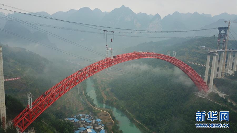 9月12日使用無(wú)人機(jī)拍攝的大小井特大橋。 目前,橫跨在貴州省羅甸縣大井河上的大小井特大橋建設(shè)進(jìn)入沖刺階段。大小井特大橋全長(zhǎng)1.5公里,主跨450米,是世界最大跨徑上承式鋼管混凝土拱橋。據(jù)了解,該橋是平塘至羅甸高速公路關(guān)鍵性工程,對(duì)打通貴州“斷頭路”,助推滇黔桂石漠化片區(qū)脫貧攻堅(jiān)具有重要意義。 新華社記者劉續(xù)攝