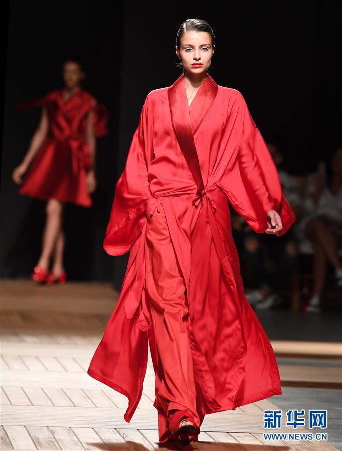 10月13日,在葡萄牙首都里斯本舉行的第51屆里斯本時裝周上,模特展示葡萄牙設(shè)計師路易斯·卡瓦略設(shè)計的新款時裝。新華社記者張立云攝