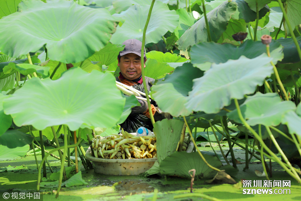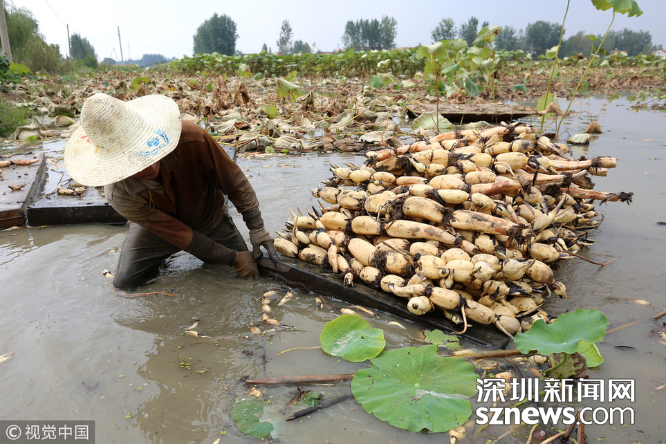 藕農(nóng)泥中“掘金” 初秋時(shí)節(jié)采藕忙