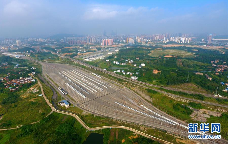 這是廣西南寧動(dòng)車所內(nèi)準(zhǔn)備發(fā)往各地的動(dòng)車組列車(6月18日無人機(jī)拍攝)。 廣西壯族自治區(qū)成立60年來,鐵路建設(shè)發(fā)生翻天覆地的變化。來自中國鐵路南寧局集團(tuán)有限公司的數(shù)據(jù)顯示,1958年廣西鐵路總里程為1346.3公里,如今廣西鐵路總里程達(dá)5191公里。廣西與周邊相鄰省份間實(shí)現(xiàn)動(dòng)車“公交化”開行。此外,北部灣港—重慶班列、東盟海產(chǎn)品冷鏈班列、“百色一號(hào)”果蔬專列等的開通和運(yùn)營(yíng),強(qiáng)化了鐵路供給的針對(duì)性和有效性。鐵路成為助推廣西經(jīng)濟(jì)社會(huì)快速發(fā)展的“大動(dòng)脈”。 新華社記者黃孝邦攝
