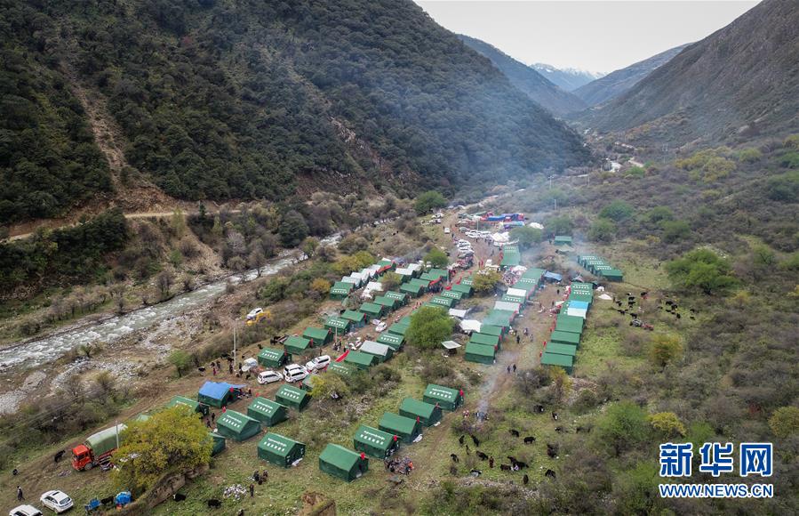 這是西藏昌都市江達(dá)縣波羅鄉(xiāng)一臨時(shí)過渡安置點(diǎn)(10月14日無人機(jī)拍攝)。