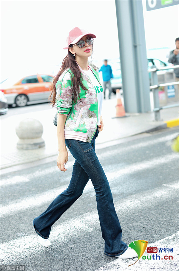 2018年10月16日,上海,林志玲亮相機(jī)場(chǎng),她身穿綠色印花外套搭配粉色鴨舌帽十分清新靚麗,乖乖坐小車(chē)抿嘴甜笑比V嘟嘴頻賣(mài)萌。