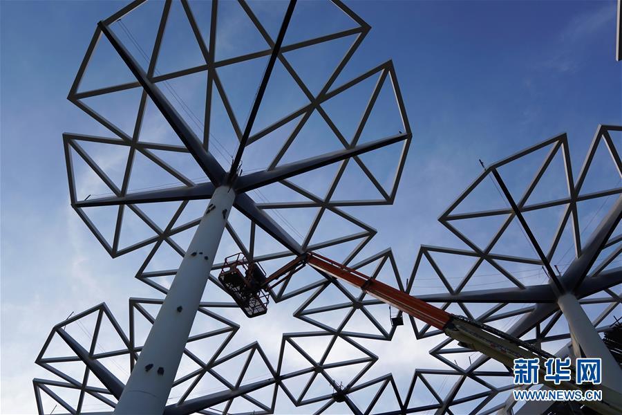 10月18日拍攝的建設中的北京世園會國際館。 新華社記者 鞠煥宗 攝