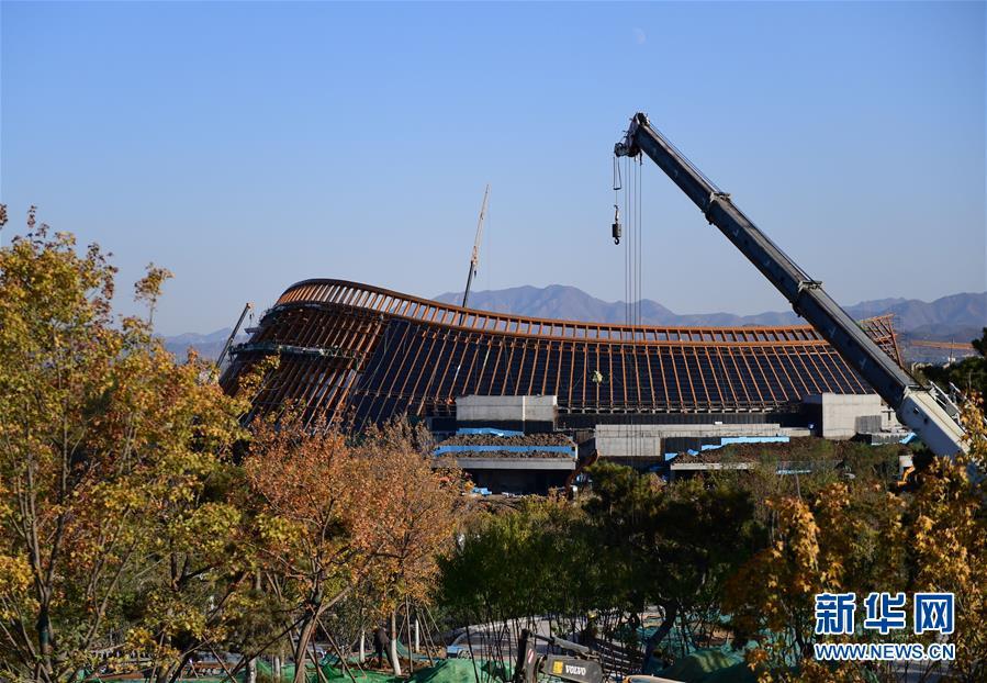 10月18日拍攝的建設(shè)中的北京世園會中國館。新華社記者 張晨霖 攝