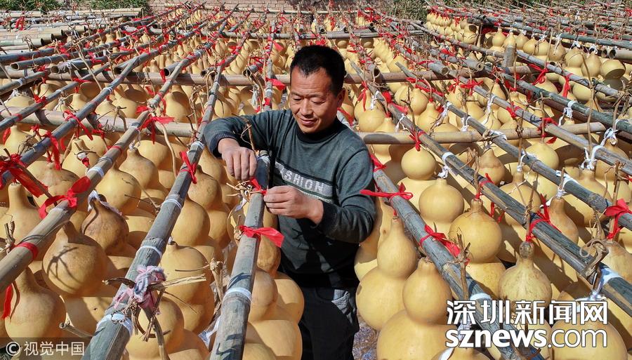 深圳新聞網(wǎng)訊 今年43歲的趙雙慧是山西省運(yùn)城市聞喜縣禮元鎮(zhèn)阜底村農(nóng)民,依托種植技術(shù)和地域優(yōu)勢(shì),積極發(fā)展葫蘆特色農(nóng)業(yè),實(shí)現(xiàn)創(chuàng)業(yè)增收。今年他種植的20多畝葫蘆喜獲豐收,成為增收的一大特色產(chǎn)業(yè)。