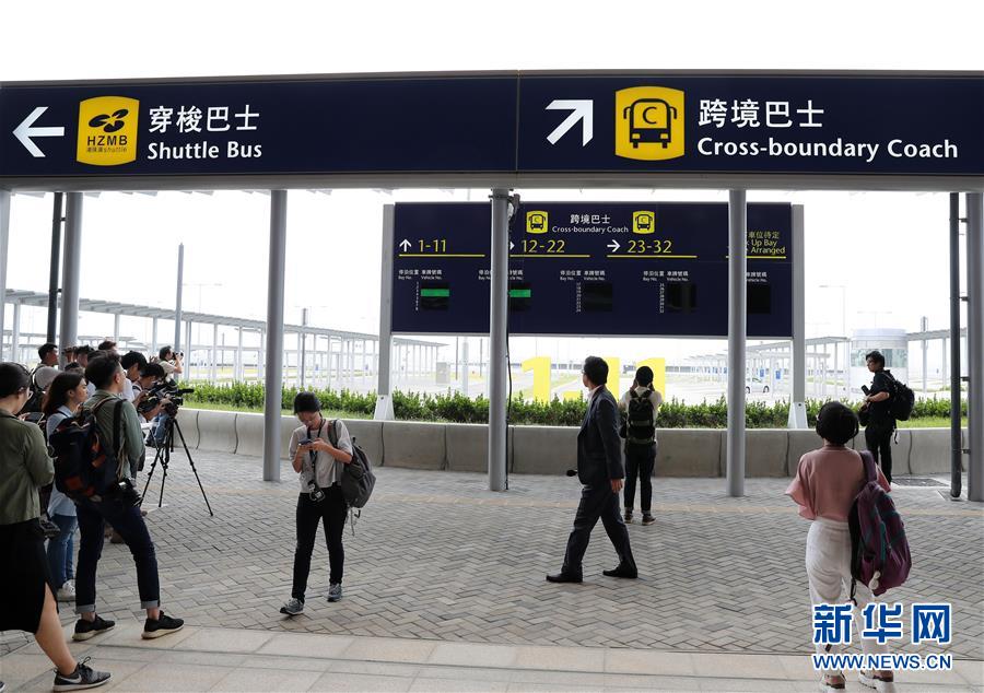 10月19日拍攝的香港口岸穿梭巴士及跨境巴士上客區(qū)。 港珠澳大橋開(kāi)通在即。 新華社記者 李鋼 攝